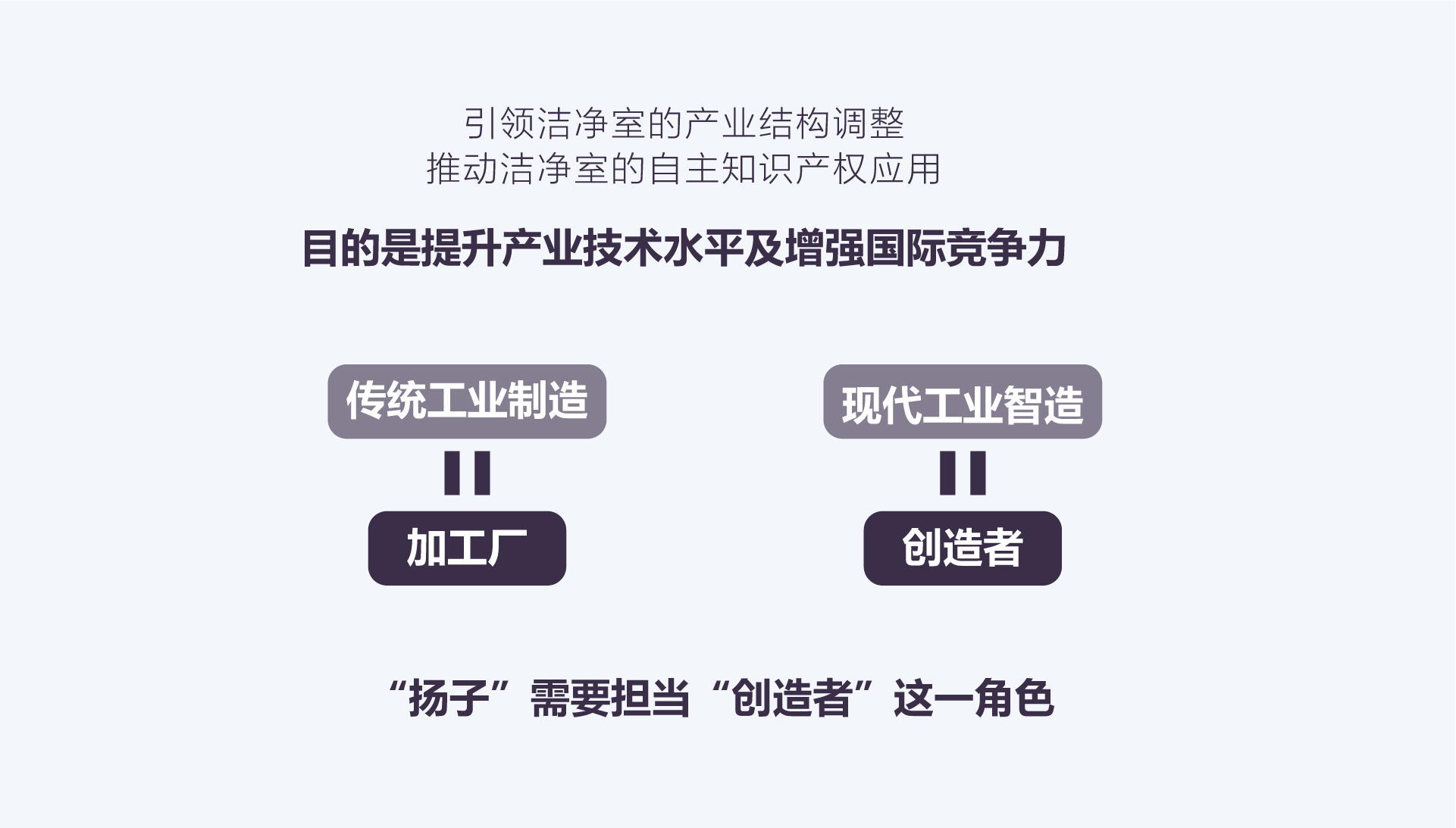 團(tuán)隊反復(fù)推敲后認(rèn)為,揚子凈化的核心價值在于 “以‘智慧’的技術(shù)與工藝,‘制造’出符合國際標(biāo)準(zhǔn)、滿足客戶精準(zhǔn)需求的無塵空間”—— 這種 “智造” 能力,是揚子凈化區(qū)別于其他企業(yè)的關(guān)鍵,也是未來潔凈工程領(lǐng)域的核心競爭力。因此,“智造無塵空間” 這一定位應(yīng)運而生。